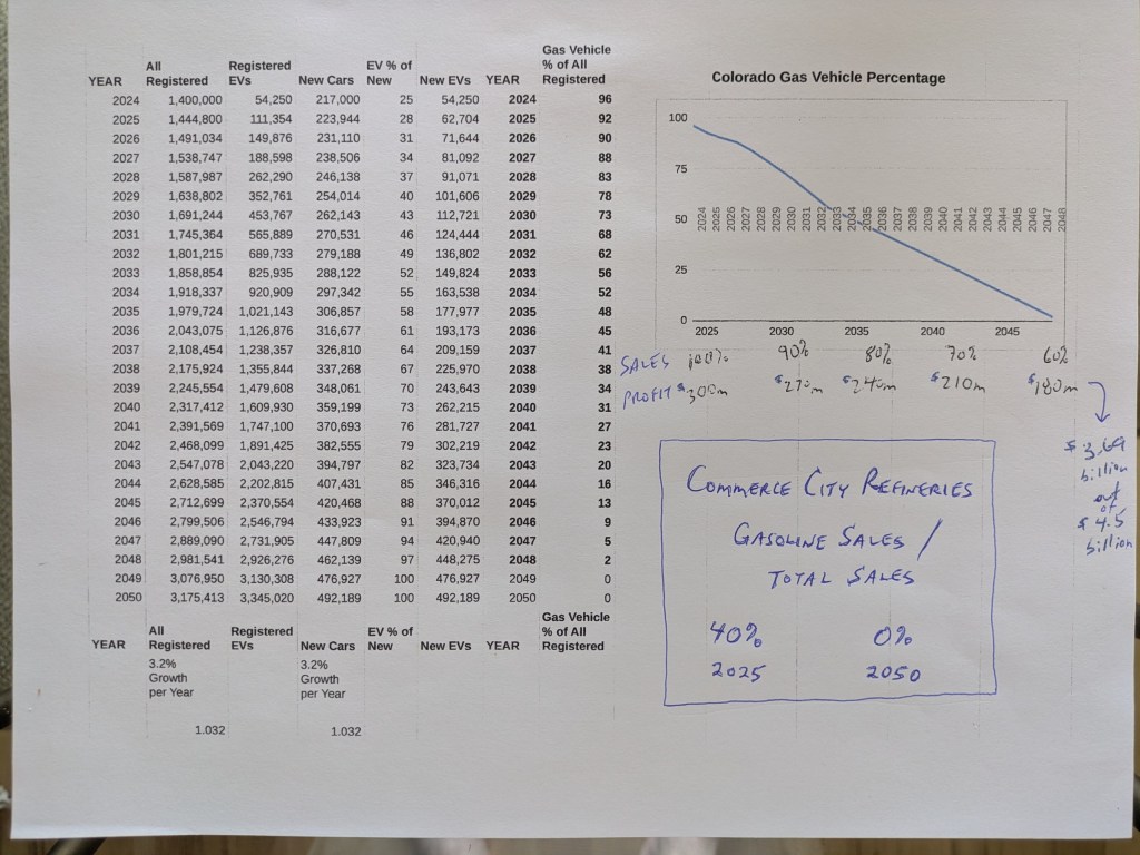 Colorado’s 100% Electric Vehicle mandate means that gasoline vehicles will disappear around 2045 and so will gasoline demand.